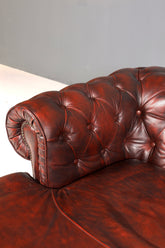 Dieses authentische Chesterfield Sofa verkörpert britische Eleganz in ihrer reinsten Form. Das viersitzige Ledersofa besticht durch die charakteristische Knopfsteppung und die markanten Rollen an den Füßen – Merkmale, die diesen Klassiker seit Generationen definieren. Das edle Oxblood-Leder entwickelt mit der Zeit eine wunderbare Patina und wird immer schöner. Inklusive passendem Hocker für zusätzlichen Komfort. Ein zeitloses Meisterstück für anspruchsvolle Wohnräume, das Stil und Substanz vereint.