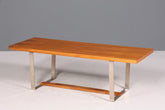Dieser elegante Mid-Century-Couchtisch aus massivem Teakholz verkörpert zeitlose Designklassik. Mit seiner warmen Holzmaserung und den charakteristischen Proportionen der 1950er–1960er Jahre wird er zum Blickfang in jedem Wohnzimmer. Die robuste Konstruktion und die natürliche Patina des Teaks erzählen die Geschichte eines authentischen Vintage-Stücks. Perfekt als zentrales Ablagetisch-Element oder zur Ergänzung einer kurierten Möbelsammlung – ein Investment in zeitlose Qualität und Stil.