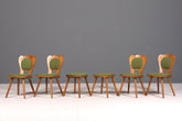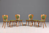 4x Schlichte Landhausstil Stühle mit zwei Hocker Retro Stuhlset Antik Stil Eiche Küchenstühle Bauernstühle Esszimmer Stühle