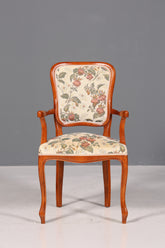 Dieser elegante Chippendale Armlehnstuhl verbindet klassische Handwerkskunst mit zeitloser Schönheit. Der charakteristische Stil zeichnet sich durch geschwungene Linien, filigrane Schnitzereien und vier schlanke, geschweifte Beine aus – typisch für die englische Möbelkunst des 18. Jahrhunderts. Der Sessel ist mit hochwertigem Gobelinstoff bezogen, der mit seinen feinen Mustern und kräftigen Farben einen Hauch von Luxus ausstrahlt. Perfekt als Sekretärsstuhl oder dekoratives Sitzmöbel für Ihr Wohnzimmer, Arbeitszimmer oder Schlafzimmer. Ein authentisches Stück Vintage-Eleganz für Sammler und Liebhaber klassischer Möbel.