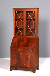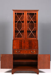 Beautiful English secretary desk, antique 1960s mahogany display cabinet, UK
