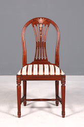 An elegant chair in classic Gustavian style with English influences – a timeless masterpiece for discerning collectors. Its subtle craftsmanship and distinctive lines make it the perfect accent piece for the kitchen, study, or living room. Authentic vintage quality meets versatile functionality: whether as a secretary chair with ergonomic comfort or as a stylish kitchen chair with historical character. An investment in timeless elegance that enhances any interior.