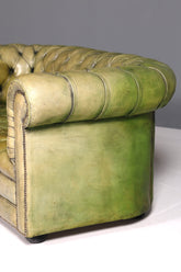 Beautiful original Chesterfield 2-seater sofa, English green, genuine leather, 2-seater couch