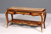 This beautiful console table in elegant Baroque style impresses with its fine craftsmanship, high-quality natural stone top, and artful veneer work in precious wood. The three drawers offer practical storage space without detracting from the overall aesthetic appeal.